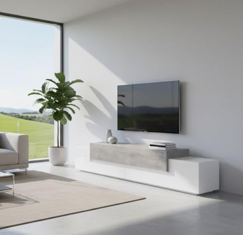 Dmora TV-Schrank Nico, niedriges Sideboard, Weiß und Beton